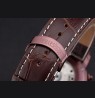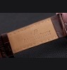 Brown crocodile leather strap with heat embossed Audemars Piguet name and logo and an Audemars Piguet inscribed burgundy stainless steel flip-over hook clasp