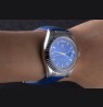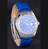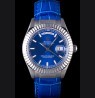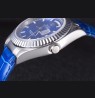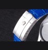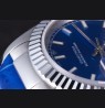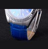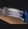 Logo and Rolex heat embossed blue crocodile leather strap with logo carved brushed stainless steel deployment clasp